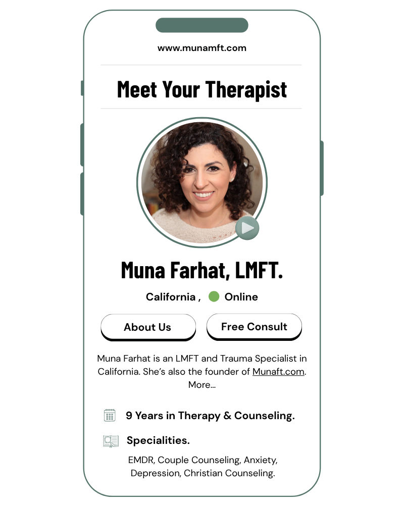 Muna Farhat, LMFT is a Licensed Marriage and Family Therapist based in San Jose, CA.